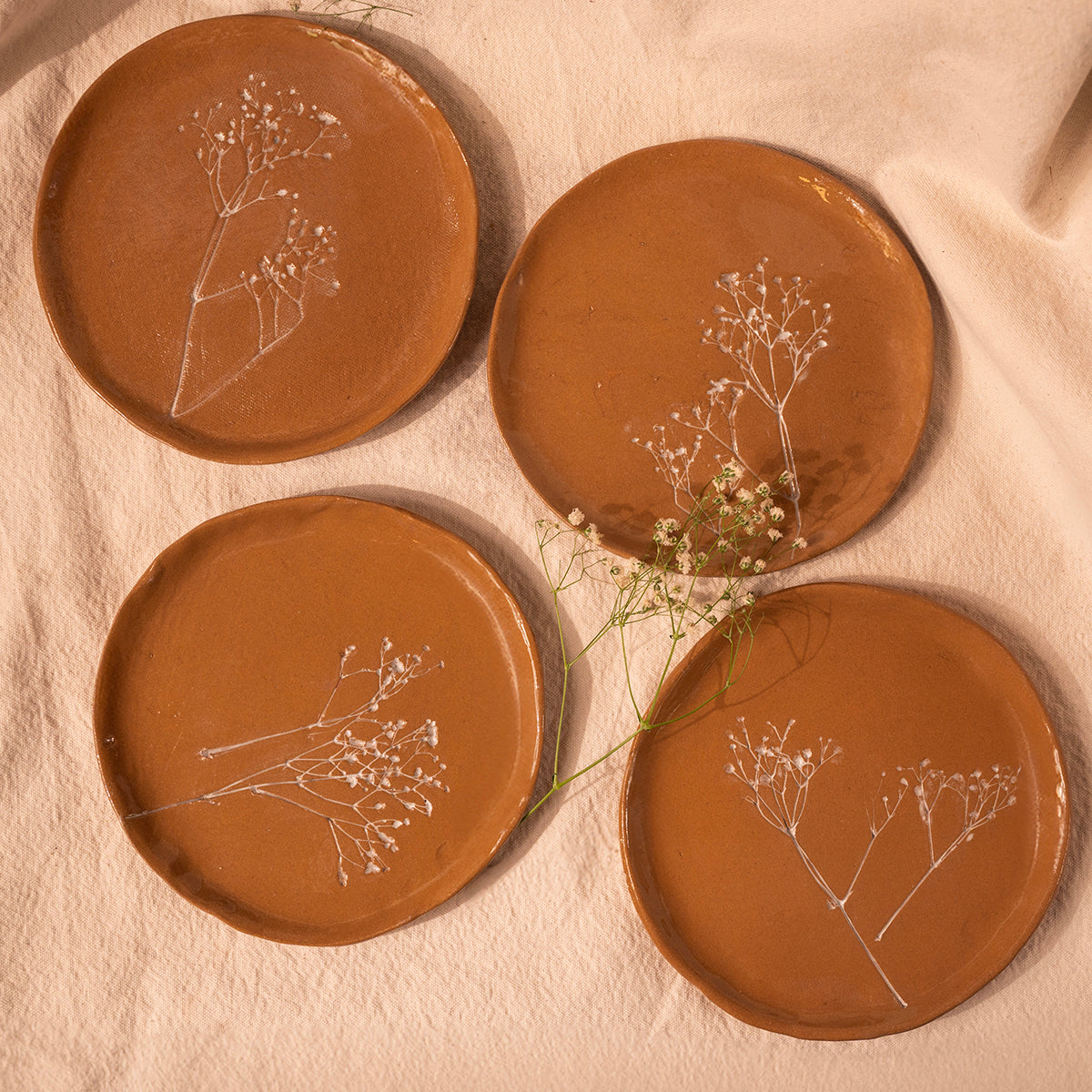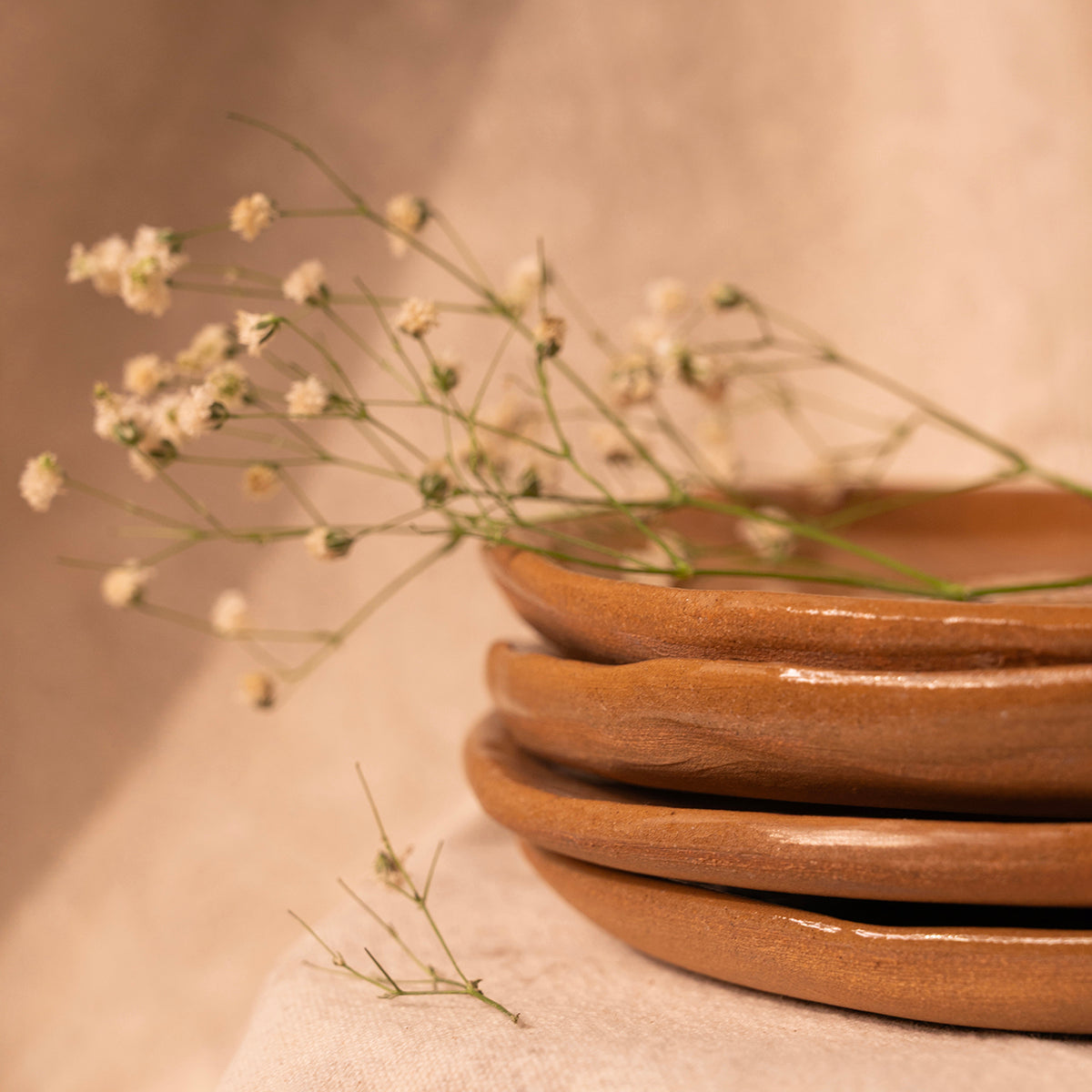 Handmade ceramic plates that blend everyday function with timeless beauty. Simple. Beautiful. Unique just like your daily ritual. Made in Brown stoneware, the plates bring more rustic look to the dining table.